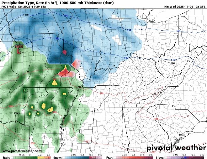 EURO is much more aggressive with the low leading to more warm air advection and rain for KY. The ultimate track of the low will determine how much snow we see with this system. For now, I am thinking any light snow accumulations will likely be washed away by rain during the day Saturday.