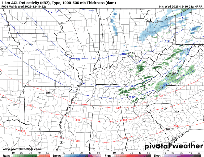 Snow will begin to accumulate on a line from Louisville to Lexington. Exact banding features will determine highest amounts but I do think there is potential for someone to see 4-5" of snow from this system in the Bluegrass Region. As the low pressure approaches I-65 I expect areas like Etown to switch over to rain. The exact timing of when this happens will determine if there will be any issues Friday morning along the parkways.